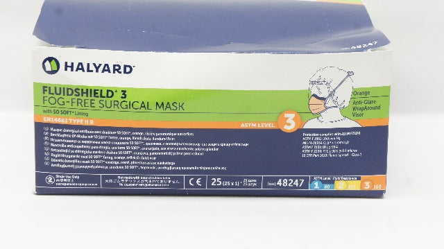Halyard 48247 Fluidshield 3 Fog-Free Surgical Mask ASTM Level 3 (x) - Box of 25
