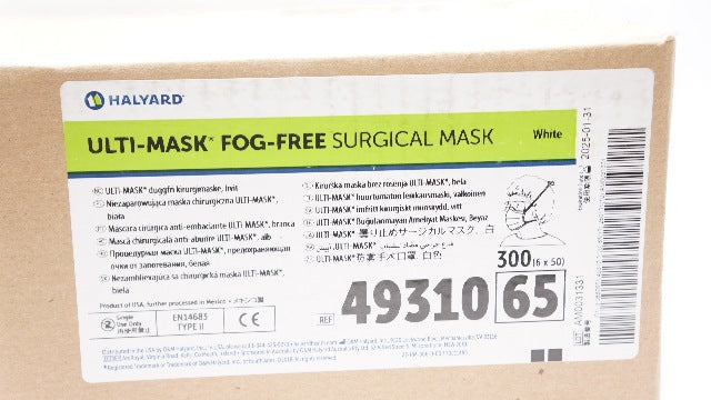 Halyard 49310 Ulti-Mask Fog-Free Surgical Mask, White - Case of 300