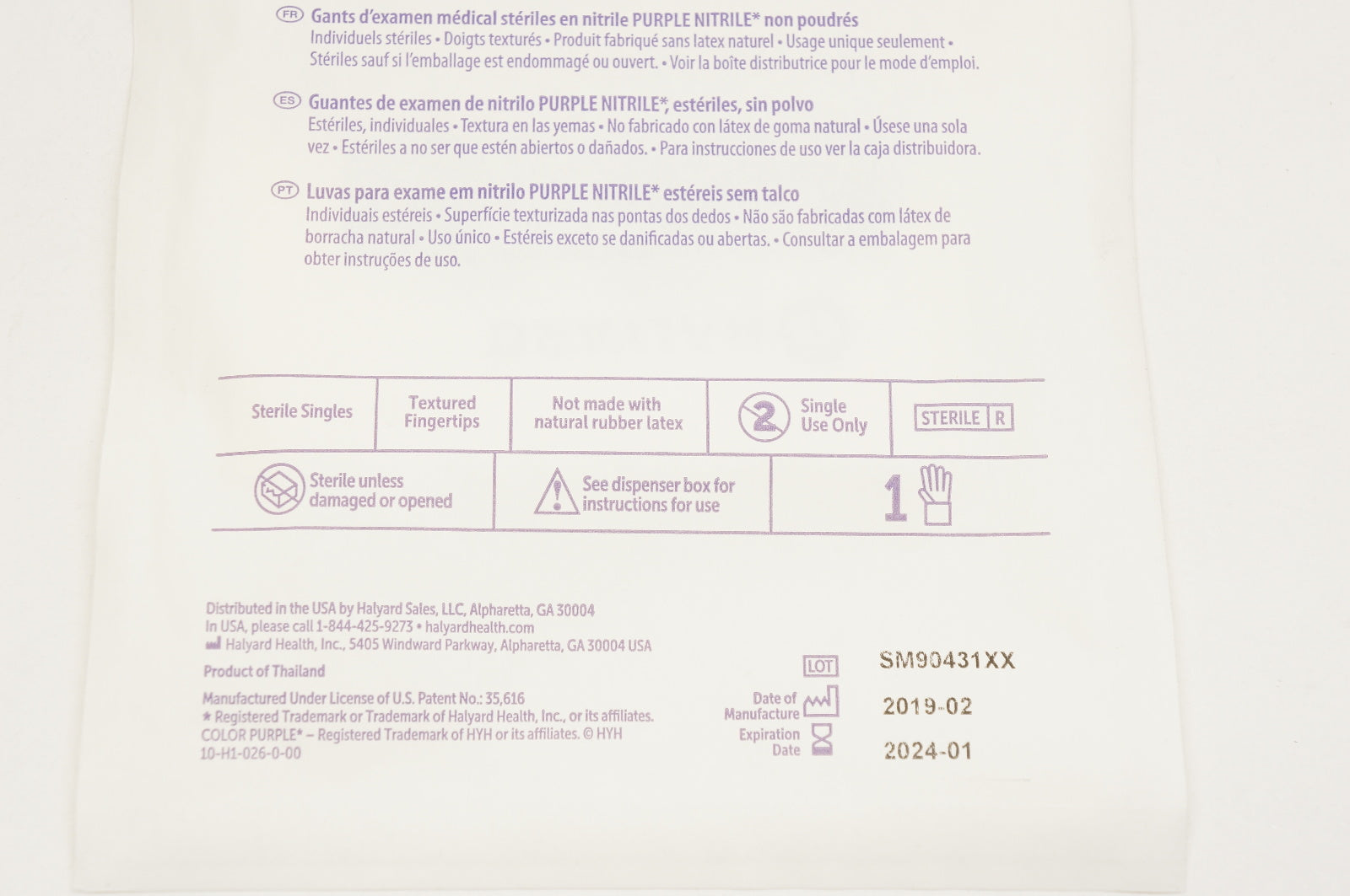 Halyard 52103 Purple Nitrile Sterile Powder-Free Exam Gloves