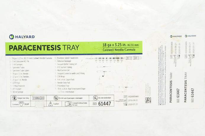 - Halyard 61447 Paracentesis Tray 18Ga x 3.25inch (x)