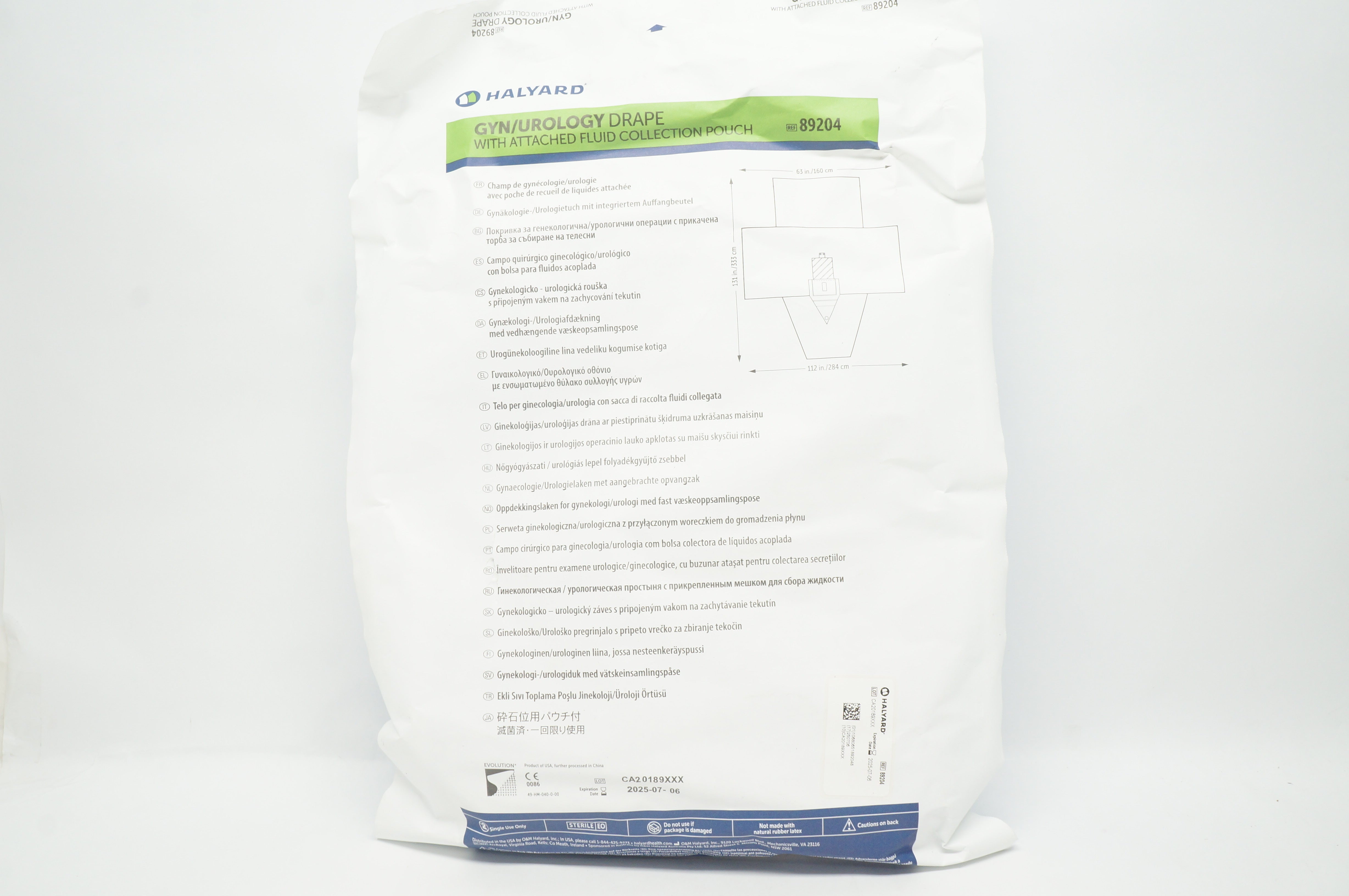 Halyard 89204 Gyn/Urological Drape W/Attached Fluid Collection Pouch 63 x 131 x 112in.