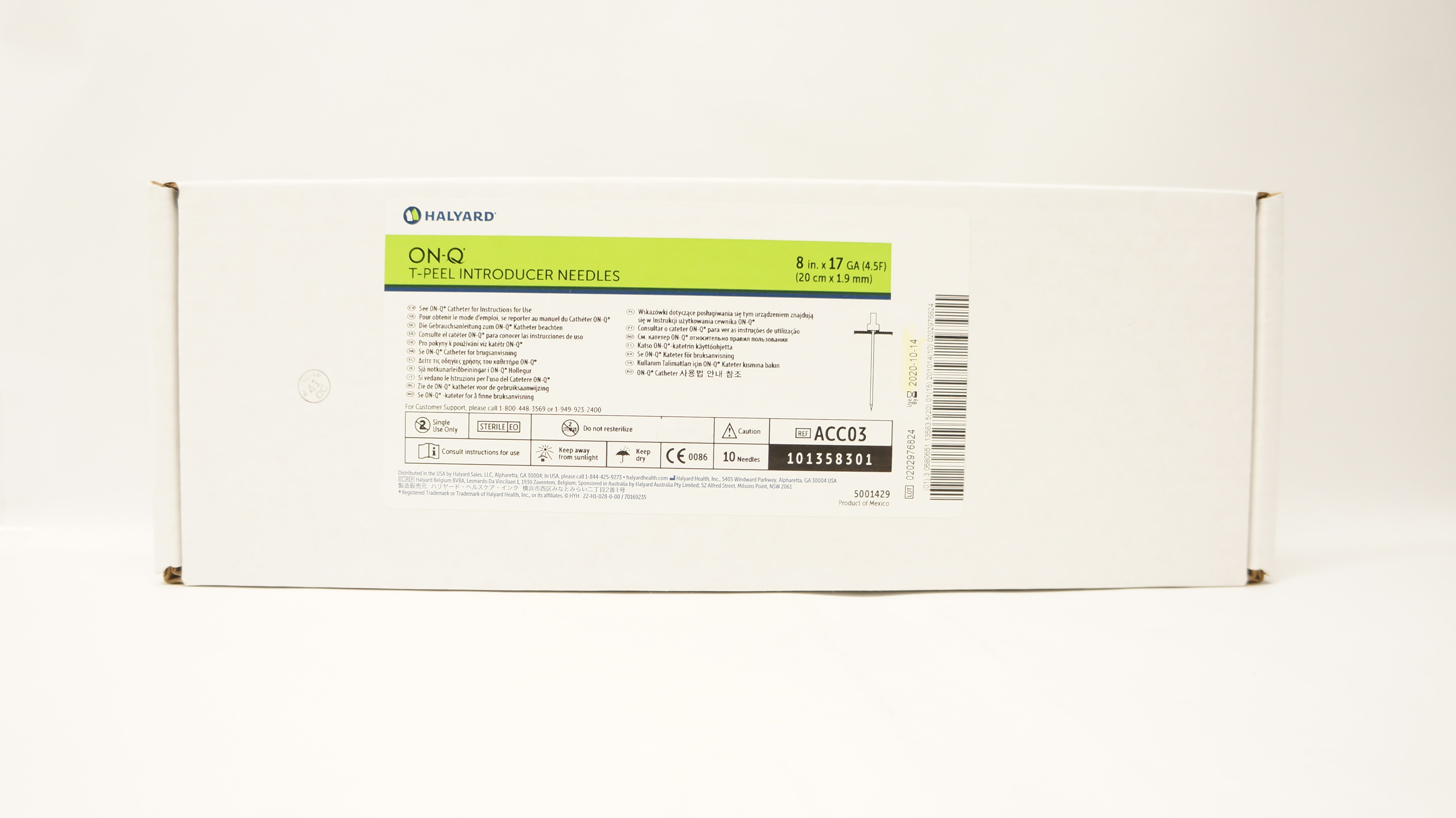 Halyard ACC03 ON-Q T-Peel Introducer Ndles 8inch x 17Ga (x) - Box of 10