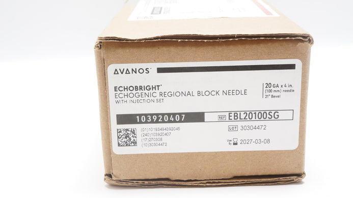 - Halyard EBL20100SG Echogenic Regional Block Ndle. 20GA x 100mm - Box of 10