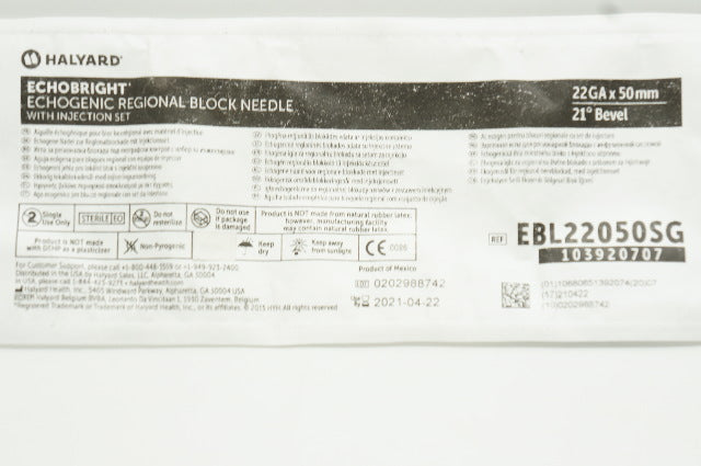 Halyard EBL22050SG EchoBright Echogenic Regional Block Ndle 22Ga x 50mm (x)