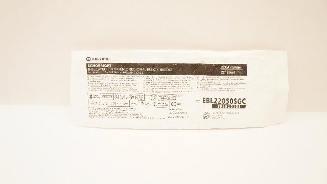 Halyard EBL22050SGC Echobright Insulated Echogenic Block Ndle 22GA x 50mm