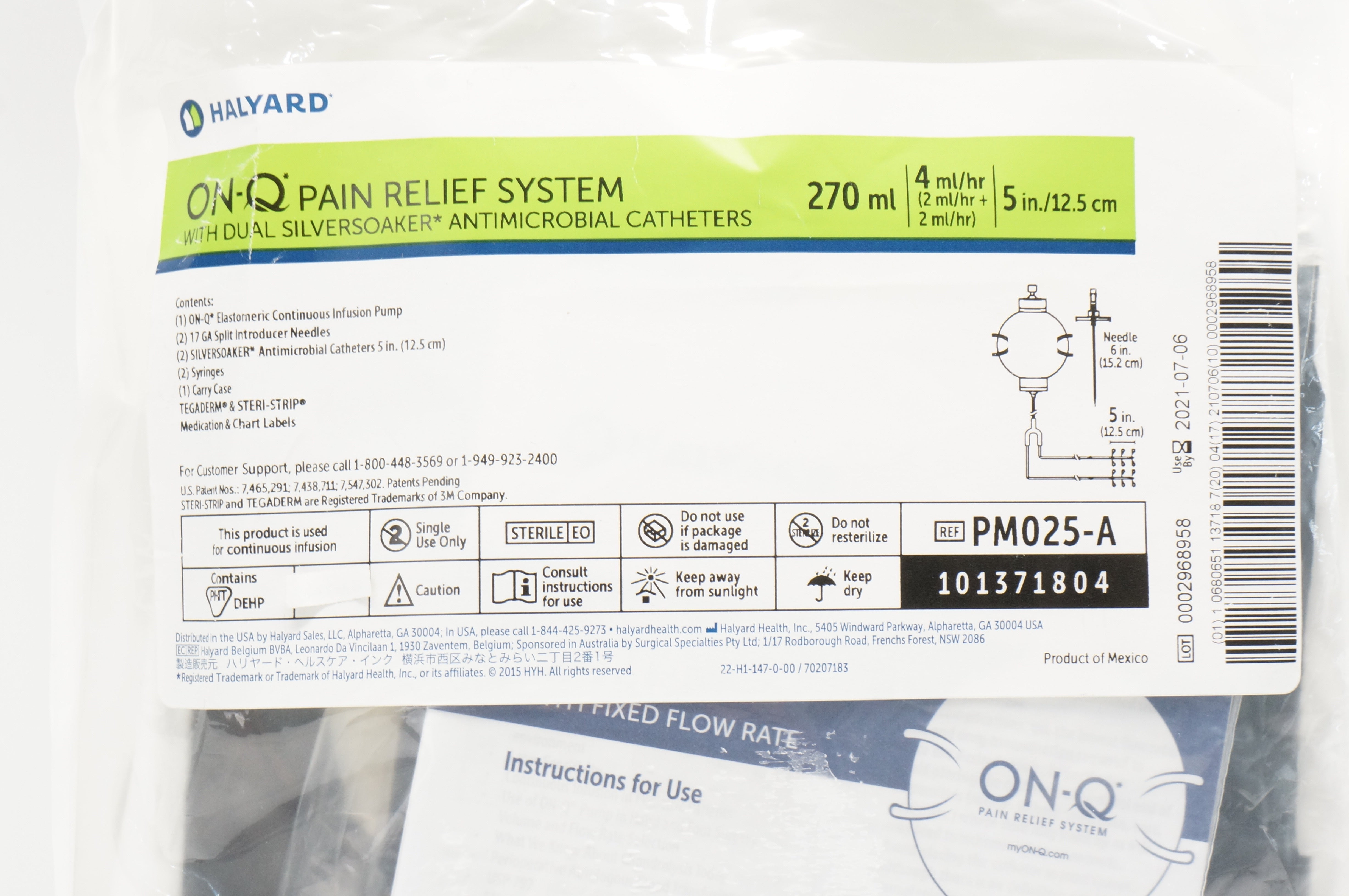 Halyard PM025-A ON-Q Pain Relief System with Dual Silversoaker Antimicrobial Catheters 270ml x 4 ml/hr x 5 inch