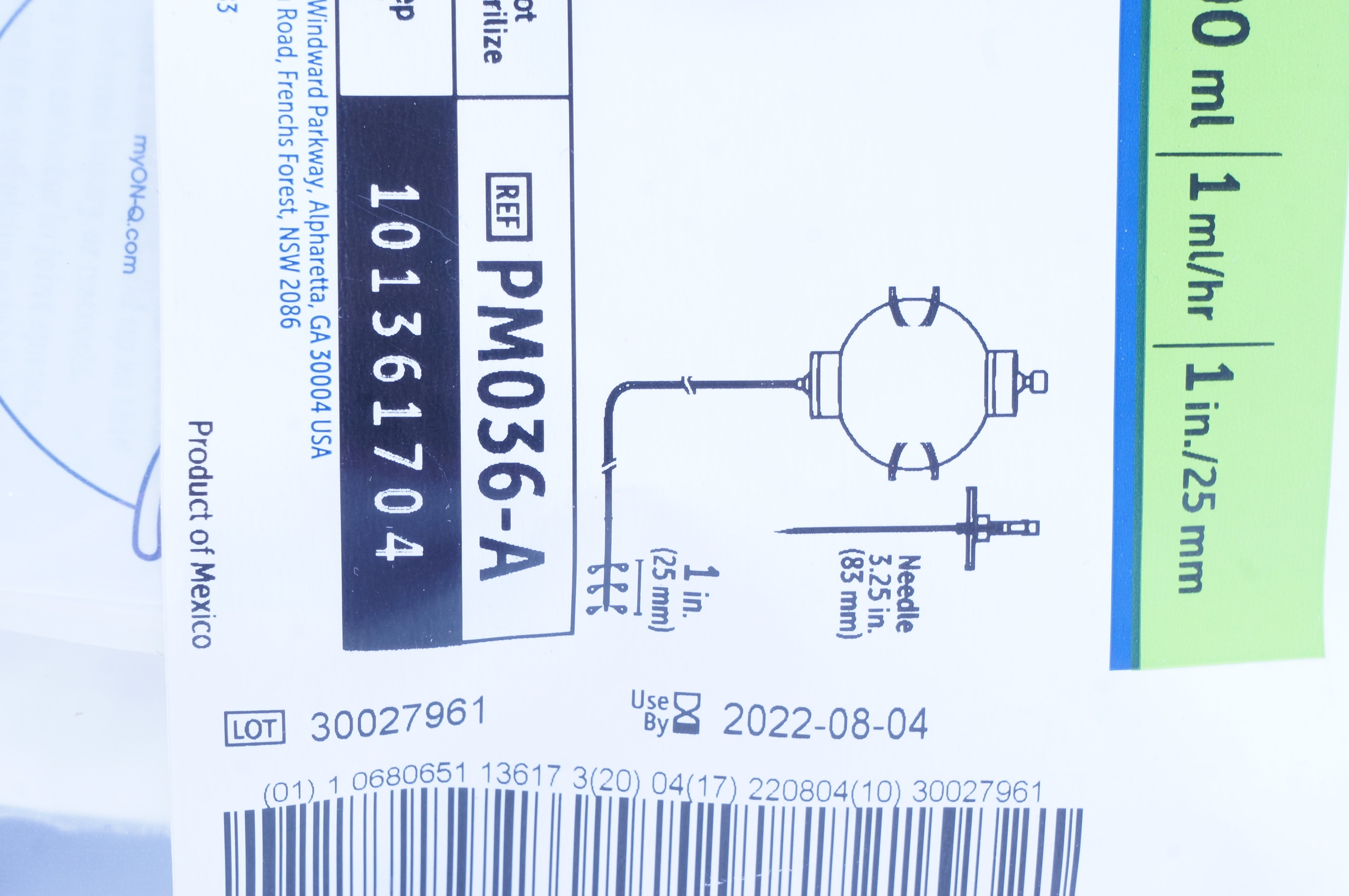 Halyard PM036-A On-Q Pain Relief System W/Antimicrobial Cath. 100ml x 1 inch