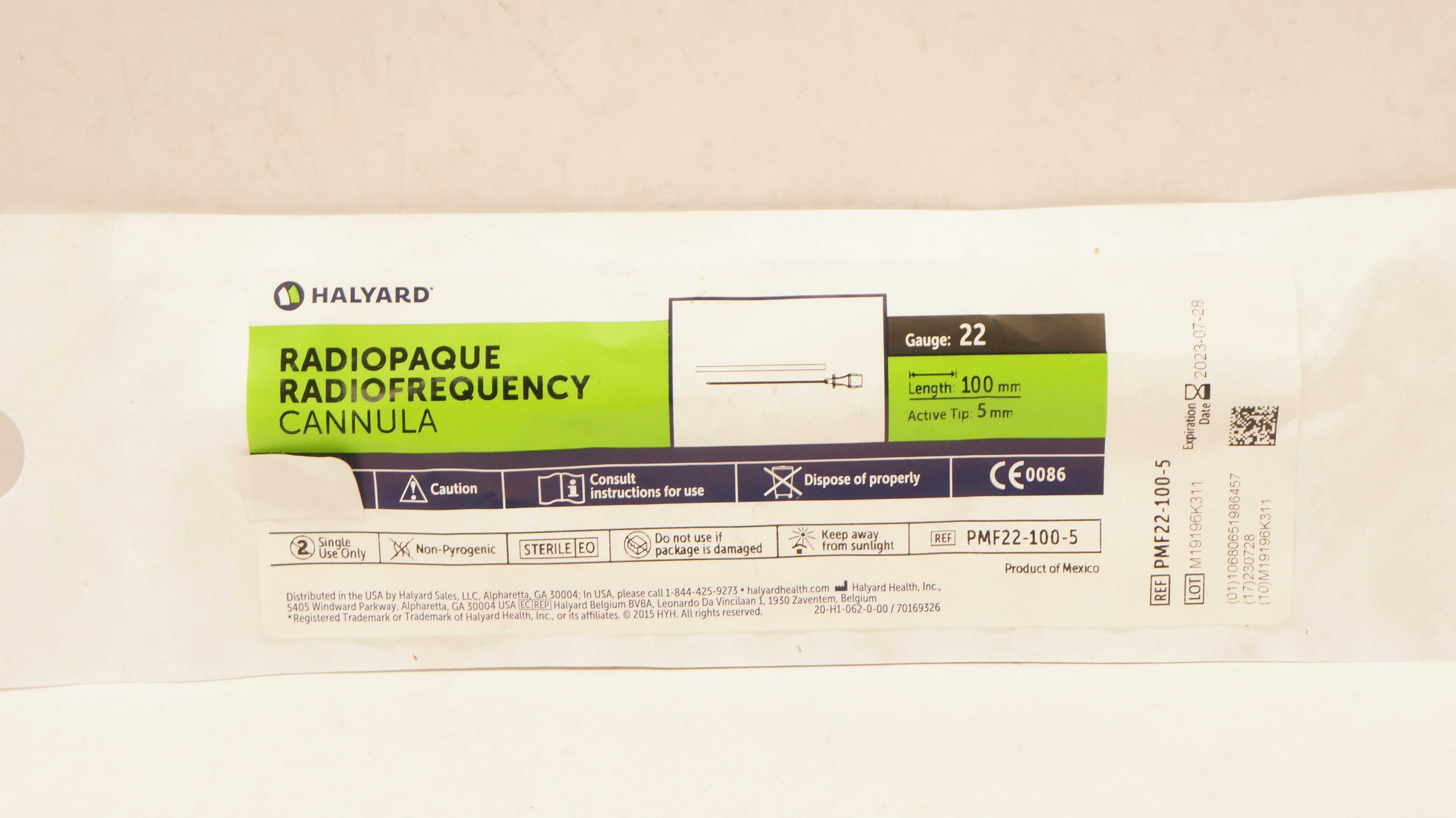 Halyard PMF22-100-5 Radiopaque Radiofrequency Cannula 22Ga x 100mm x 5mm