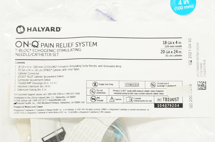 Halyard TB100ST ON-Q Pain Relief System Echogenic Stimulating Ndle/Cath. Set (x)