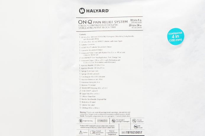 - Halyard TBT02100ST ON-Q Pain Relief T-Bloc Stimulating Nerve Block Tray 18GaX4in