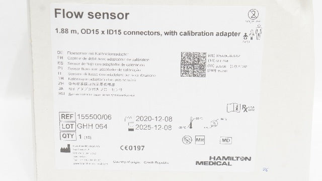 - Hamilton Medical 155500/06 Flow Sensor 1.88m, OD15 x ID15 Connectors