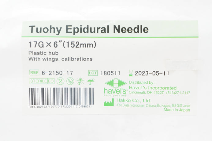 - Havel's 6-2150-17 Tuohy Epidural Ndle, 17 G x 6 inch