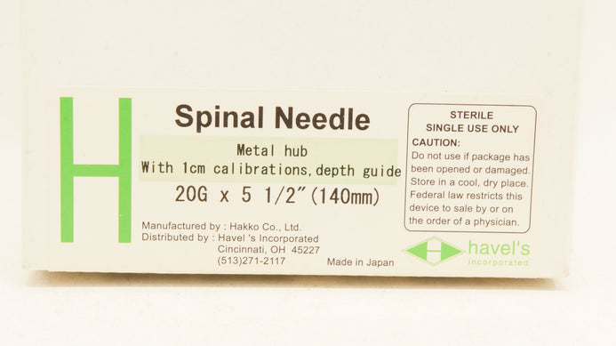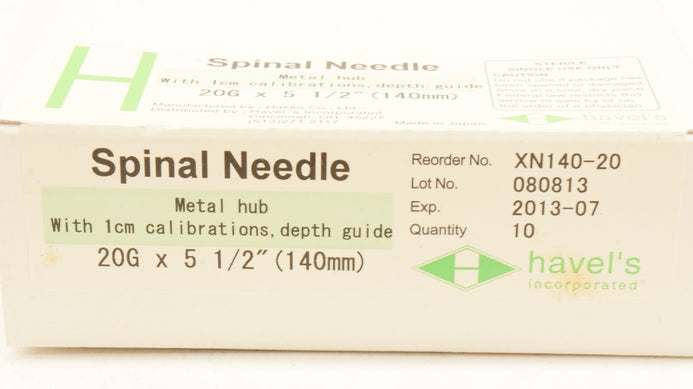 - Havel's XN140-20 Spinal Needle Metal Hub 20G x 5 1/2inch - Box of 10 (x)