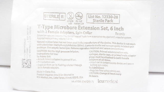 - Hospira 12330-28 Y-Type Microbore Extension Set 6inch