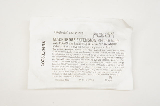 - Hospira 12645-28 Macrobore Extension Set, 5.5inch