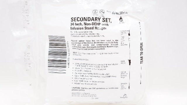 Hospira 14230-28 Secondary Set w/Infusion Stand Hanger, 34inch 15 Drops/mL