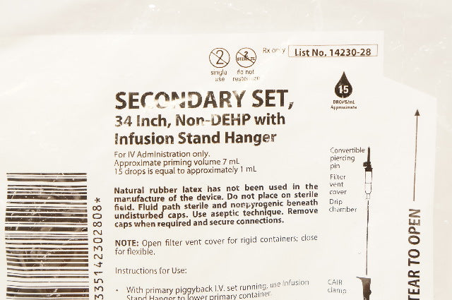 Hospira 14230-28 Secondary Set w/Infusion Stand Hanger, 34inch 15 Drops/mL (x)