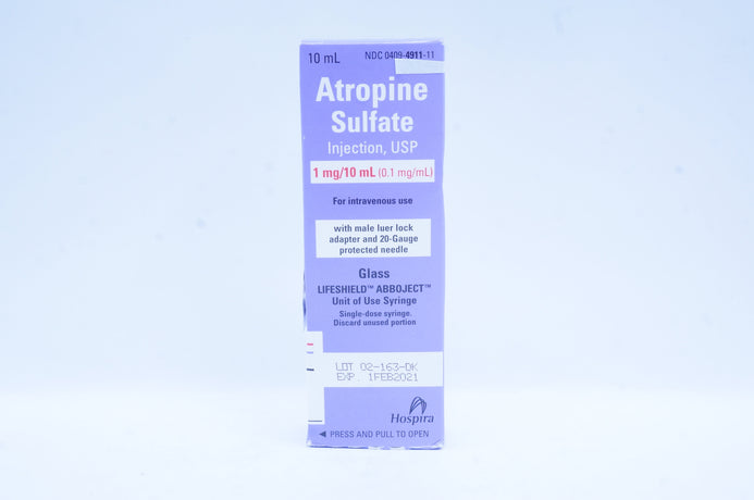 - Hospira Atropine Sulfate Injection, USP 1mg/10mL Lifeshield Abboject Syringe (x)