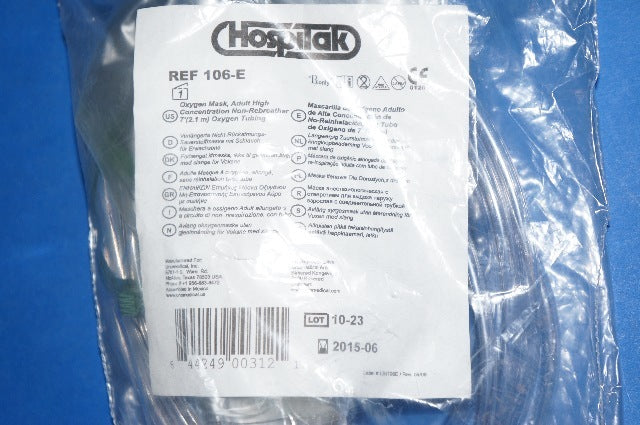 - Hospitak 106-E Oxygen Mask, Adult High Concentration Non-Rebreather 7'