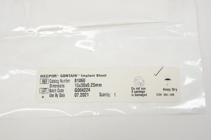 Howmedica 81060 MEPOR CONTAIN Implant Sheet 15 x 30 x 0.25mm