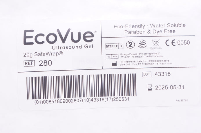 - HR Pharmaceuticals 280 EcoVue Ultrasound Gel 20g SafeWrap