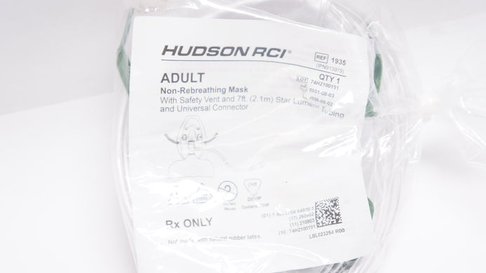 - Hudson RCI 1935 Adult Non-Rebreathing Mask w/Safety Vent, 7Ft.Tubing & Connector