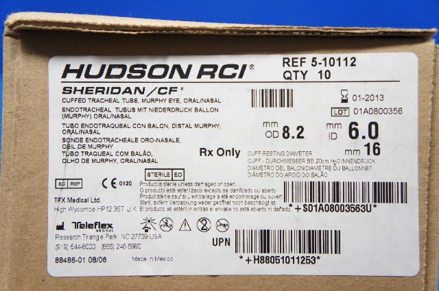 - Hudson RCI 5-10112 Sheridan Cuffed Tracheal Tube, Murphy Eye 6.0mm ID Box of 10
