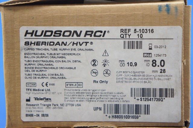- Hudson RCI 5-10316 Sheridan/HVT Cuffet Tracheal Tube 10.9 x 8.0 (x) ~ Box of 10