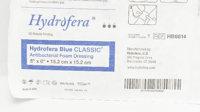 - Hydrofera HB6614 Blue Antibacterial Foam Dressing 6inch x 6inch