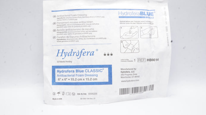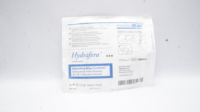 - Hydrofera HB6614 Blue Antibacterial Foam Dressing 6inch x 6inch