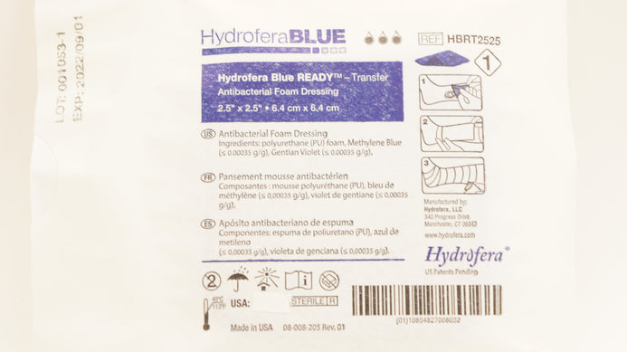 Hydrofera HBRT2525 Blue Ready Antibacterial Foam Dressing 2.5inch x 2.5inch