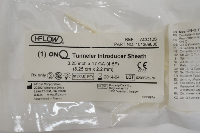 - I-Flow ACC12S On-Q Tunneler Introducer Sheath 3.25inch x 17Ga (x)