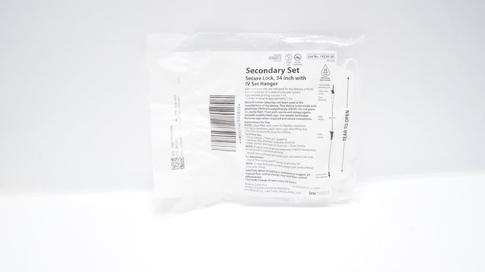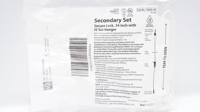 - ICU Medical 14230-28 Secondary Set w/IV Set Hanger 34inch x 7mL 15 Drops/mL
