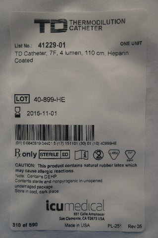 - ICU Medical 41229-01 Thermodilution Cath, 7F, 4 Lumen, 110cm, Heparin Coated (x)