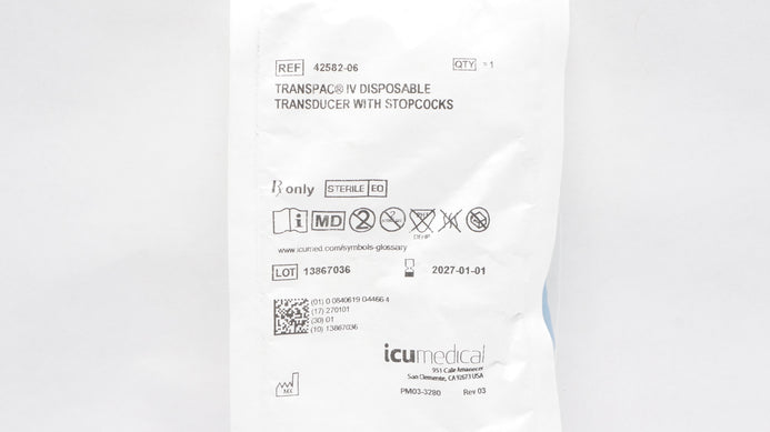 - ICU Medical 42582-06 Transpac IV Disposable Transducer With Stopcocks