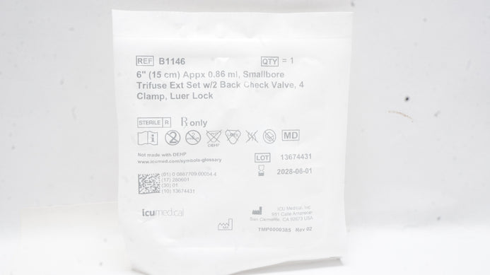 - ICU Medical B1146 Smallbore Trifuse Extension Set 6inch x 0.86ml