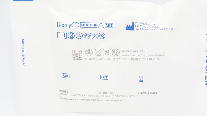 - ICU Medical B9058 Extension Set with 2 Clamp, Rotating Luer 32inch x 4.4mL