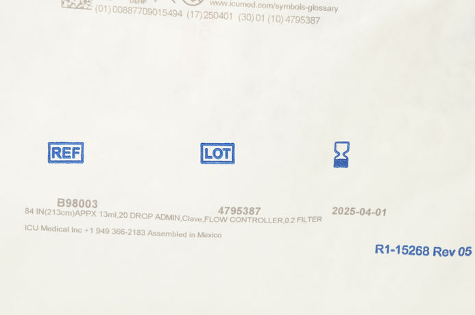 ICU Medical B98003 Primary Administration Set, 20 Drops / mL