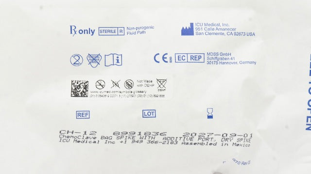 - Icu Medical CH-12 ChemoClave Bag Spike W/Additive Port