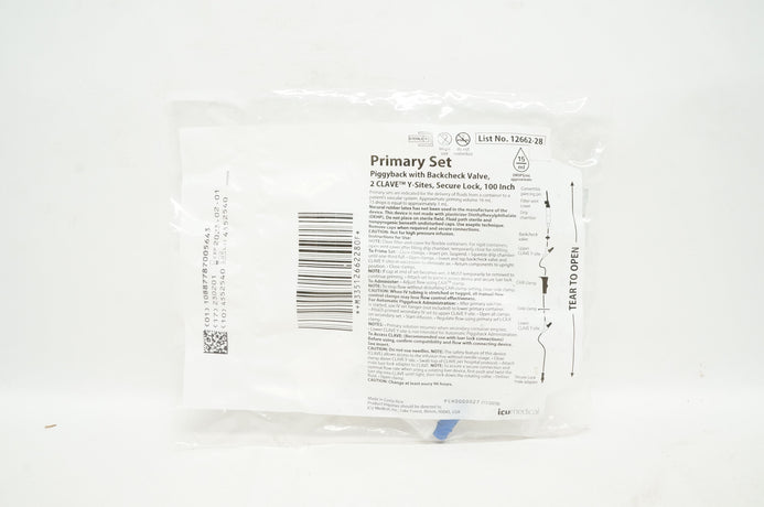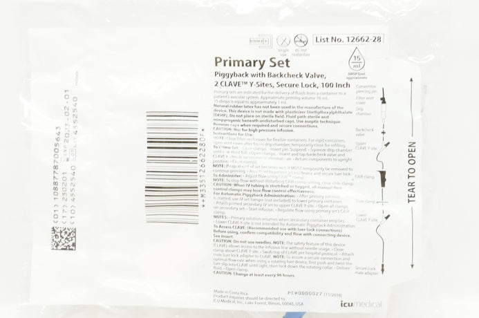 - IcuMedical 12662-28 Primary Set Piggyback 2 Clave Y-Sites Secure Lock, 100 Inch