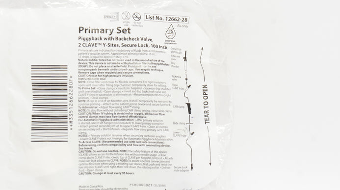 IcuMedical 12662-28 Primary Set Piggyback 2 Clave Y-Sites Secure Lock, 100 Inch