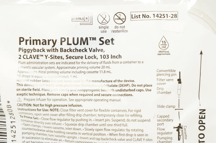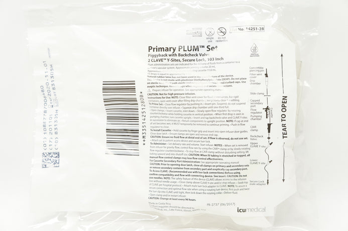 - IcuMedical 14251-28 Primary Plum Set Pyggyback W/Backcheck Valve 2 Clave (x)