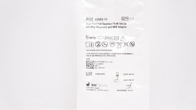 - IcuMedical 42004-13 Dual Port 3ml Squeeze Flush Set Up W/4way Stopcock & Adaptor