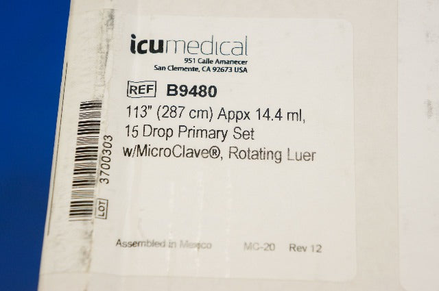 icumedical B9480 113inch Appx 14.4ml, 15 Drop Primary Set ~ Box of 50