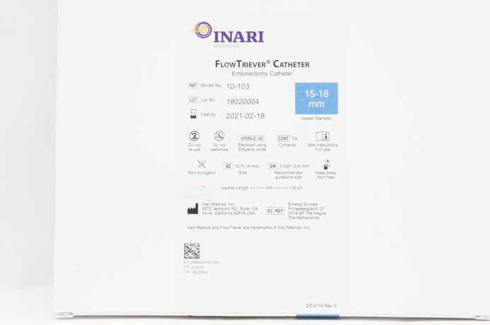 INARI MEDICAL 10-103 Flow Triever Cath. Embolectomy Cath., 12Fr 15-18mm (x)