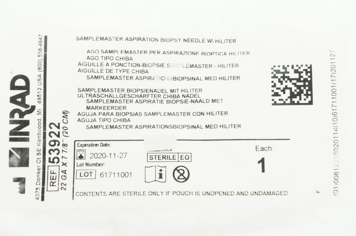 - Inrad 53922 Samplemaster Aspiration Biopsy Ndle Hiliter 22Ga x 7 7/8in. (x)