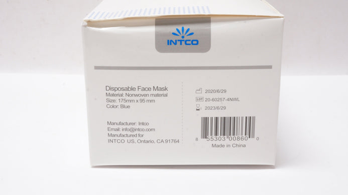 Intco Disposable Face Mask 175mm x 95mm, Blue - Box of 50