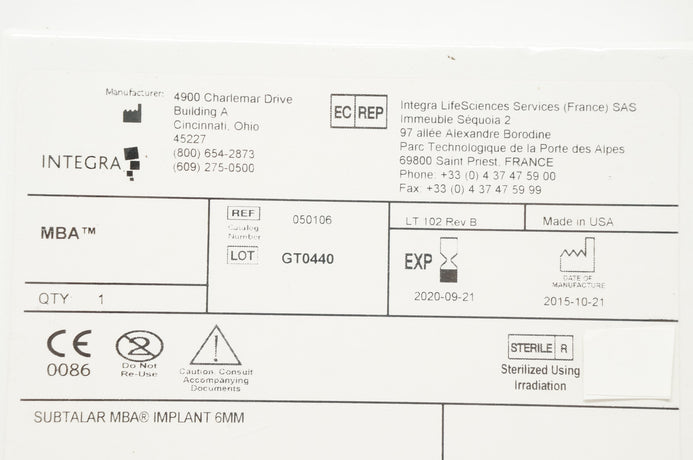 - Integra 050106 Subtalar MBA, Implant 6mm (x)