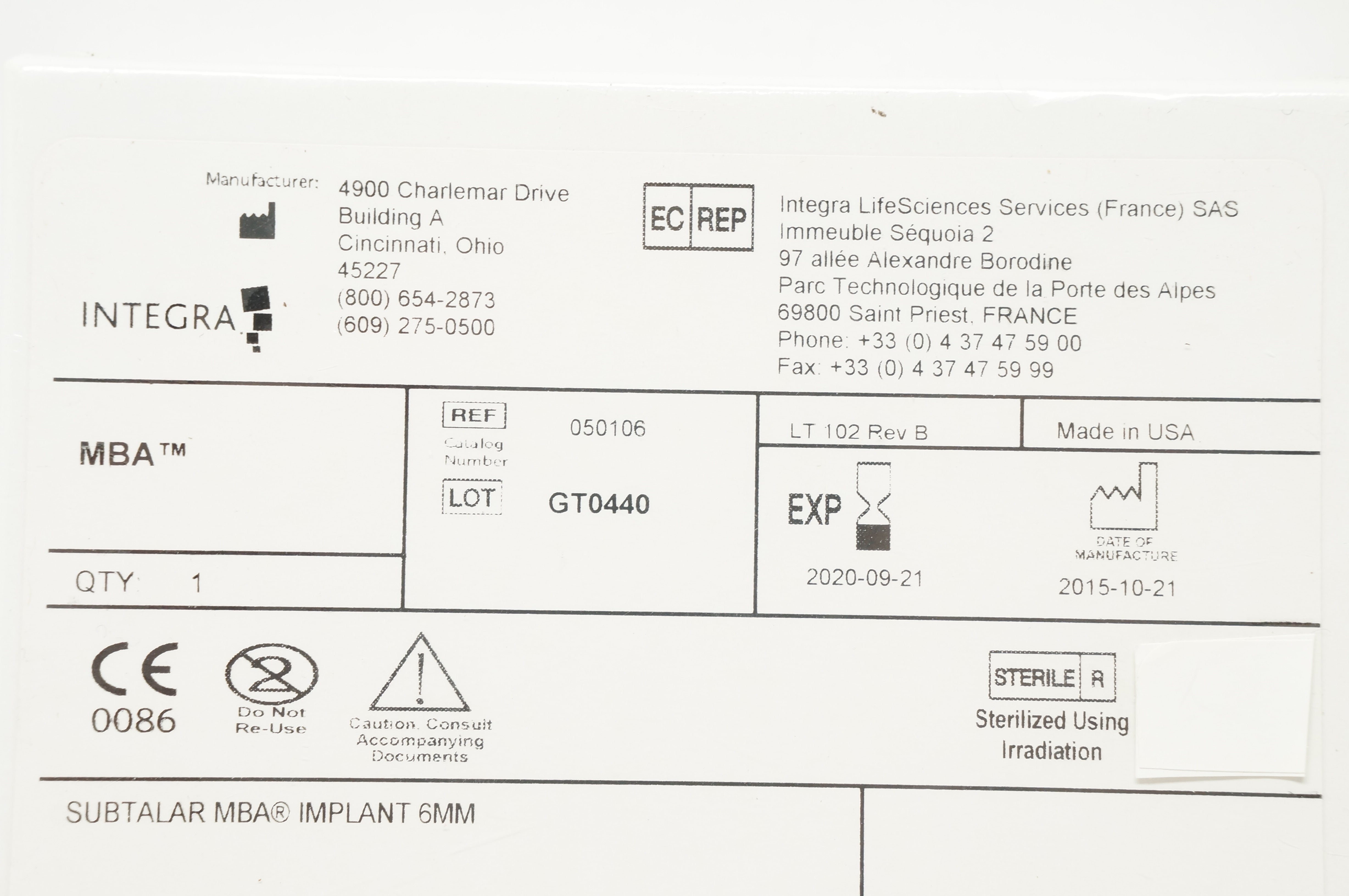 Integra 050106 Subtalar MBA, Implant 6mm (x)