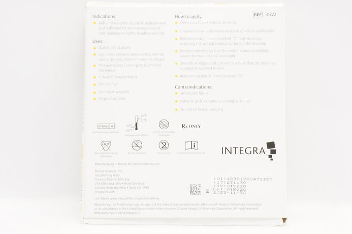 - Integra 31722 MEDIHONEY Adhesive WITH HCS Sheet 2.8inch x 2.8inch - Box of 10